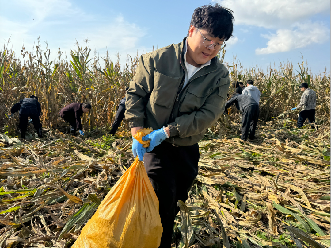 在商河,支行团委迅速组织“助农先锋队”深入一线,投身抢收工作。走访收粮及种植大户,倾听资金周转等急难愁盼的金融需求,并制定了精准有效的信贷支持方案。青年员工们在泥泞的田埂上,掰棒、传递、装袋、搬运,形成了一条高效的“人工流水线”,将金融关怀和务实行动融入了田间地头。