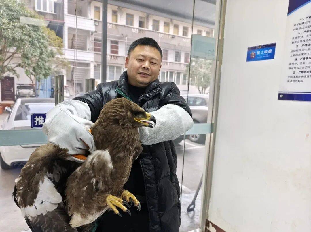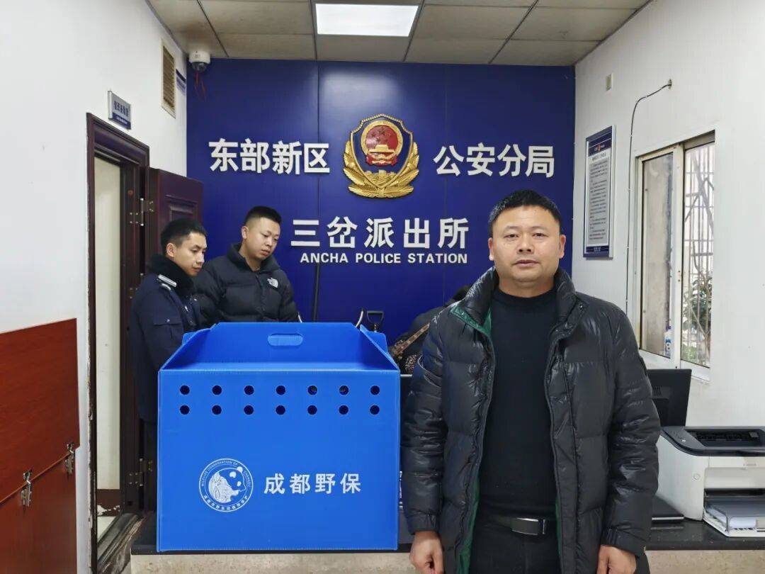 梅胜福当即拨通了成都东部新区三岔派出所的报警电话。民警迅速出警,将这位特殊的“伤员”接回所内暂为照料,提供了一个安全的临时庇护所。次日一早,草原雕被顺利转运至成都动物园(成都市野生动物研究所)。
